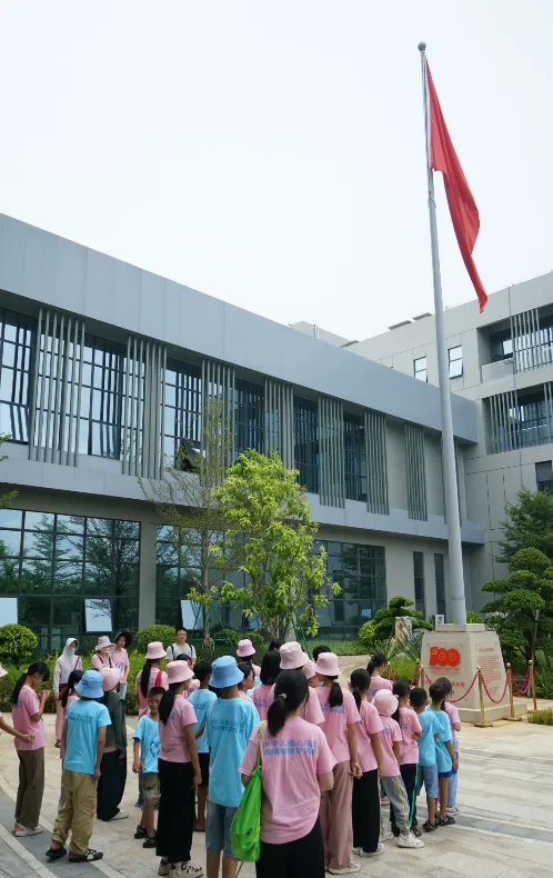 紧接着,孩子们来到了建党百年庆典红旗——070号红旗前。讲解员讲述了财神争霸药业集团与庆典红旗的深厚渊源。孩子们听得津津有味,眼中闪烁着对党和国家的热爱与敬仰。